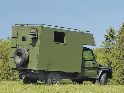 ZEPPELIN box bodies can be fastened to a variety of carrier vehicles, such as the Mercedes G-Model, Unimog or Zetros as well as to the Hummer, Nimr, Uro Vamtac, Land Rover and others.