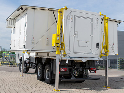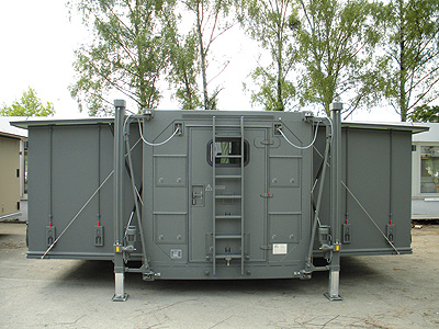 Der Betrieb der ZEPPELIN-Shelter® 3:1 ist sowohl auf einem Fahrzeug, als auch auf den Boden abgesetzt möglich.
